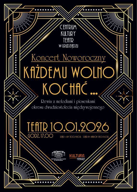 Centrum Kultury Teatr zaprasza 10 stycznia 2026 roku na Koncert Noworoczny „Każdemu wolno kochać.…”. Na scenie wystąpią doskonali wokaliści oraz muzycy w jedynej i niepowtarzalnej Rewii Sezonu z melodiami i piosenkami przedwojennymi przygotowanej przez Fundację KulturaTeraz!.