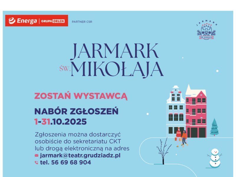 Nabór zgłoszeń trwa do 31 października 2025 roku. Wypełnione formularze można dostarczać osobiście do Centrum Kultury Teatr lub drogą elektroniczną na adres e-mail: jarmark@teatr.grudziadz.pl.