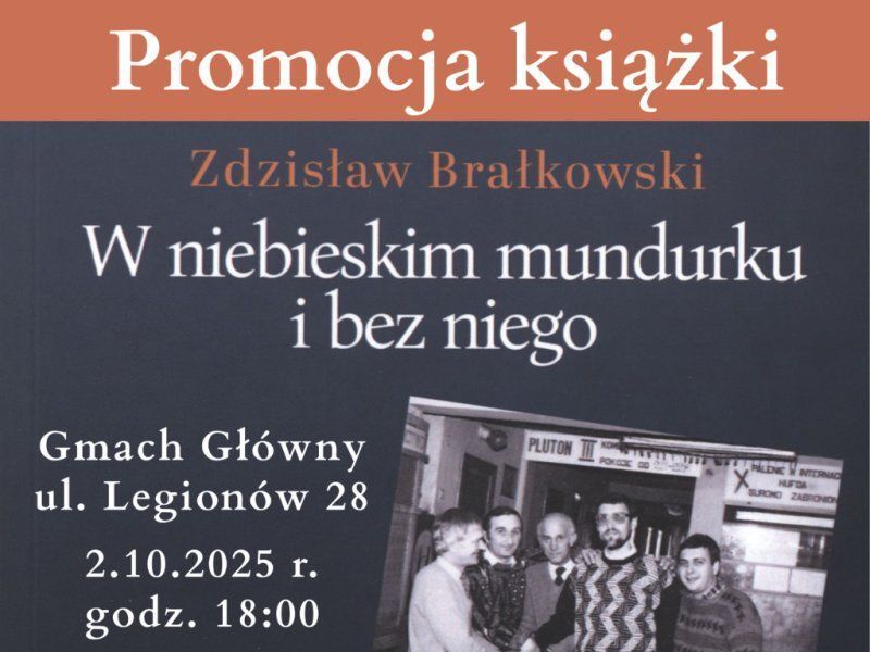 2 października (czwartek) o godzinie 18:00 w Bibliotece Głównej przy ul. Legionów 28 odbędzie się promocja książki Zdzisława Brałkowskiego „W niebieskim mundurku i bez niego”. Jest to siódma książka z cyklu „Zza zasłony czasu”.