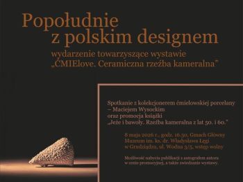 POPOŁUDNIE Z POLSKIM DESIGNEM - wydarzenie towarzyszące wystawie „ĆMIElove. Ceramiczna rzeźba kameralna”. Zapraszamy w piątek, 8 maja 2026, godz. 16.30, do Gmachu Głównego Muzeum, ul. Wodna 3/5, wstęp wolny
