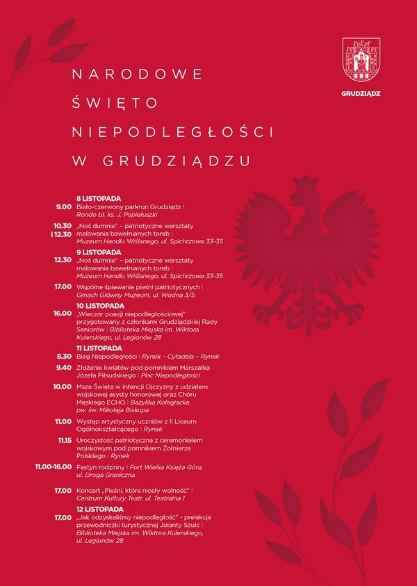 plakat wydarzeń w Grudziądzu z okazji Narodowego Święta Niepodglegości