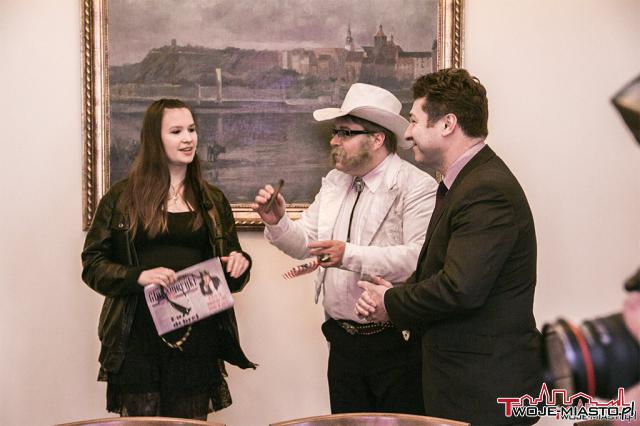 Amerykański biznesmen wybrał się z wizytą do wiceprezydenta Grudziądza - Przemysława Ślusarskiego. To happening promujący startującą w sobotę jubileuszową edycję Festiwalu Grudziądzka Wiosna Teatralna.