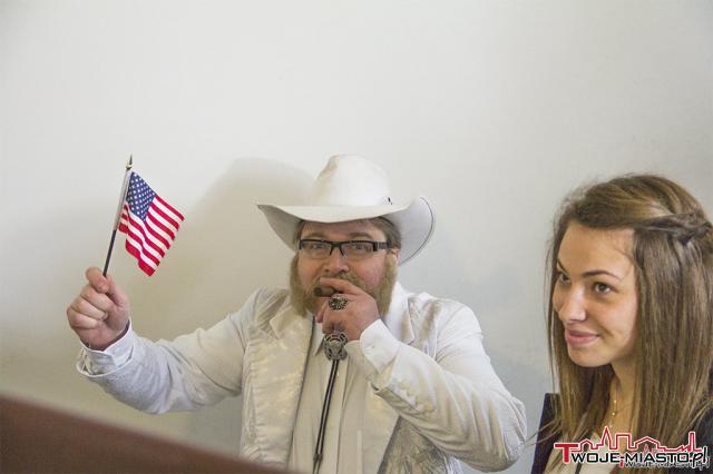 Amerykański biznesmen wybrał się z wizytą do wiceprezydenta Grudziądza - Przemysława Ślusarskiego. To happening promujący startującą w sobotę jubileuszową edycję Festiwalu Grudziądzka Wiosna Teatralna.